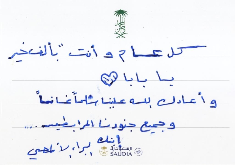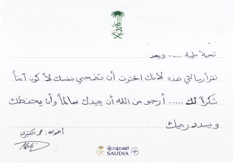 ـ “الورقة صغيرة لا تكفي .. ولا تسطيع طائرة الخطوط السعودية حمل ما في قلوبنا تجاهكم أيها الأبطال”.