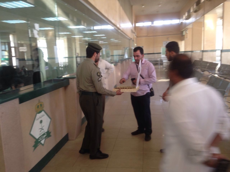 قامت جوازات منفذ الحديثة، صباح أول أيام عيد الأضحى المبارك، بمعايدة القادمين والمسافرين عبر المنفذ، بالحلوى وباقات الورود، في بادرة لاقت قبول واستحسان المسافرين.