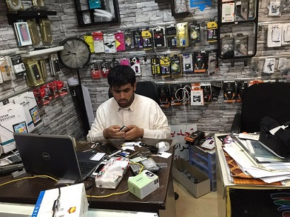بالصور.. شباب سعوديون يبدعون في مجال بيع وصيانة الجوالات بعسير