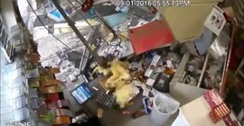 شاهد.. سيارة تحطم سوبر ماركت داخل محطة بنزين