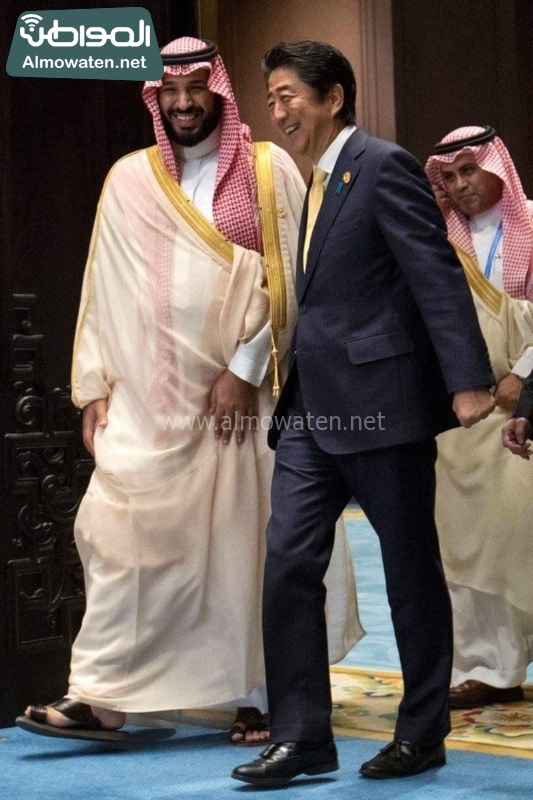 كما رصدت صور حصلت عليها “المواطن” ولي ولي العهد خلال وصوله إلى مقر انعقاد القمة واستقباله من الرئيس الصيني وايضاً حديثه مع رئيس الوزراء الياباني .