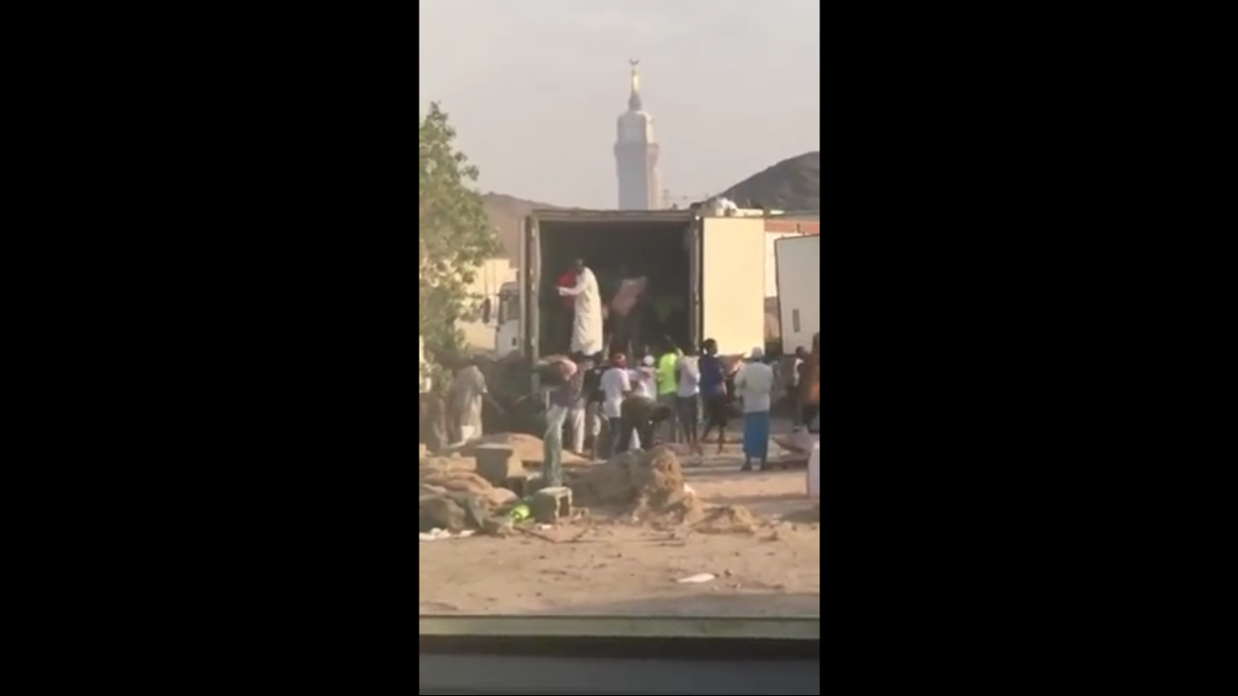 وبيّن الفيديو، الذي وثّقه أحد المواطنين، سيارات كبيرة بها عشرات الأضاحي، وتظهر من خلفها الساعة المجاورة للحرم المكي، حيث تمّ إلقاء الأضاحي على أشخاص متجمعين، ويحمل الفرد الواحد ما بين ثلاثة وأربعة أضاحي، لوضعها في سيارته.