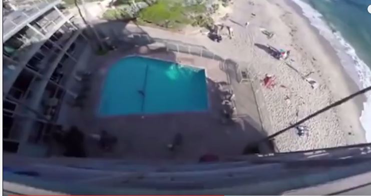 وأظهر مقطع فيديو متداول مغامراً أمريكياً يقفز من ارتفاع عدة طوابق إلى حمام السباحة بدقة متناهية بالرغم من خطورة القفزة التي قد تعرضه لإصابة مميتة.