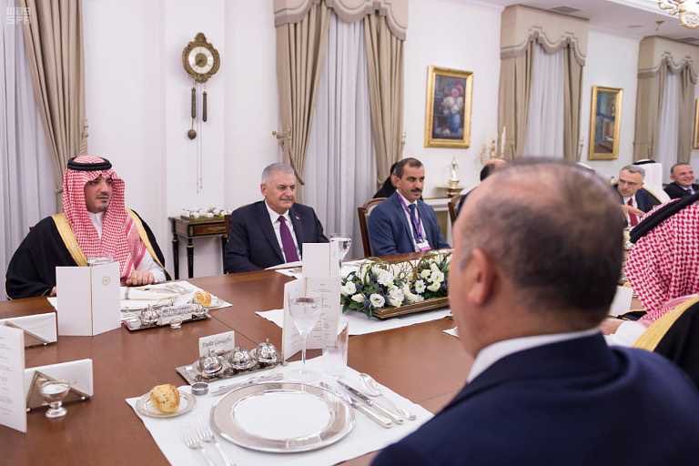 أقام دولة رئيس وزراء جمهورية تركيا، بن علي يلدرم، مأدبة عشاء، مساء اليوم، تكريمًا لصاحب السمو الملكي الأمير محمد بن نايف بن عبد العزيز، ولي العهد نائب رئيس مجلس الوزراء، وزير الداخلية، والوفد المرافق له؛ وذلك بمقر إقامته في مقر رئاسة مجلس الوزراء بأنقرة.