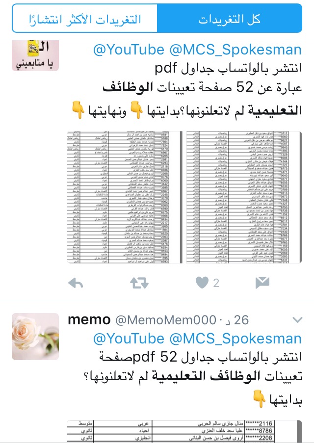 وبعد التحقق من الأسماء، تبيّن أنها تعود لإعلان المعينات في مفاضلة الوظائف التعليمية النسوية، في العام الماضي.