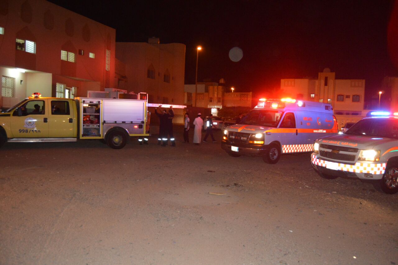 وأضاف: تم انتقال فرق الدفاع المدني للموقع، واتضح احتجاز مقيم، أعلى الملحق، وتم إنزاله عن طريق سيارة السلالم، بصحة جيدة ولله الحمد.