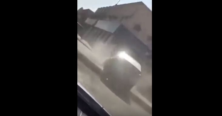 ويوثّق الفيديو، انحراف السيارة ناحية اليمين، دون ملاحظة قائدها، لترتطم بأحد الحواجز الأسمنتية على جانب الطريق، ثم تقفز فوقه، وترتطم بحاجزٍ آخر.