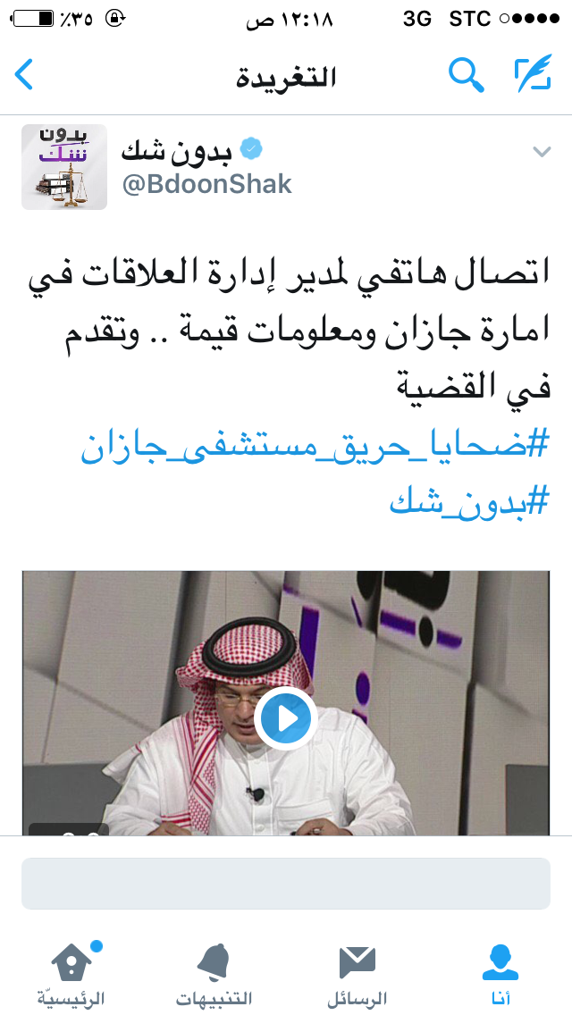 جاء ذلك، من خلال الاتصال الهاتفي، بالبرنامج، ومواجهة ذوي الضحايا بمدير العلاقات العامة والإعلام بإمارة جازان، ياسين القاسم، حيث وجّه مقدم البرنامج، سؤال من شقين للقاسم، من وكيف تم محاسبة المتسببين والمقصرين في كارثة مستشفى جازان؟، وما الإجراءات التي أتخذت حيالهم؟، والجانب الآخر.. ماذا عن تعويضات ذوي المتوفين والمتضررين؟.