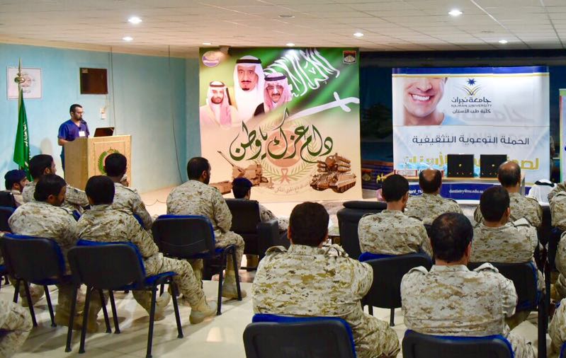 قدمت جامعة نجران ممثلة في كلية طب الأسنان خدمات طبية من خلال الكشف على المرابطين من القوات العسكرية، حيث بدأت بتقديم الخدمة لقوات الكتيبة ( ١٢٨) للدفاع الجوي بمنطقة نجران، وعدد من قوات الواجب لدولة الإمارات العربية المتحدة المشاركين في العمليتين العسكريتين “عاصفة الحزم” و”إعادة الأمل، بالإضافة إلى تقديم النصح لهم فيما يخص المحافظة على صحة أسنانهم.