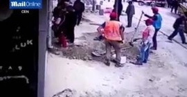 شاهد.. عامل يغرق عملاء بنك بالمياه!