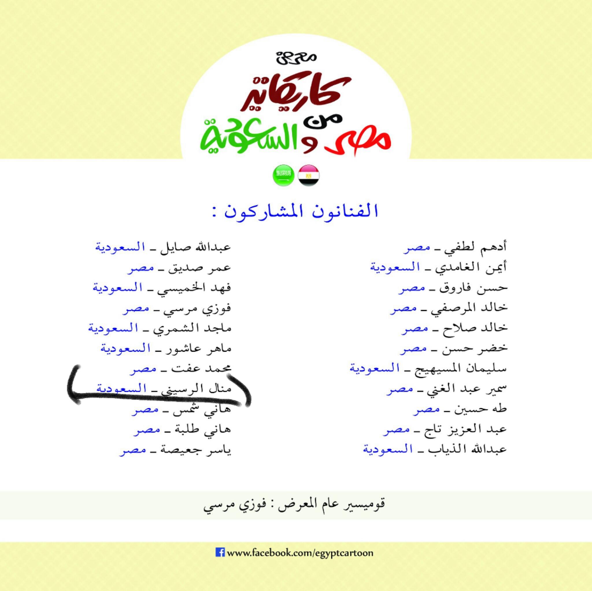 أُقيم في المركز المصري للتعاون الثقافي الدولي بمصر، معرض لرسوم الكاريكاتير بين فناني مصر والسعودية بمشاركة 22 فنانًا من الدولتين.