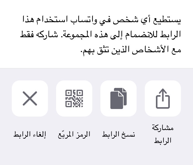 وقالت الشركة شرحاً للخاصية : يستطيع أي شخص في واتساب استخدام هذا الرابط للانضمام الى هذه المجموعة ، شارك فقط مع الأشخاص الذين تثق بهم .