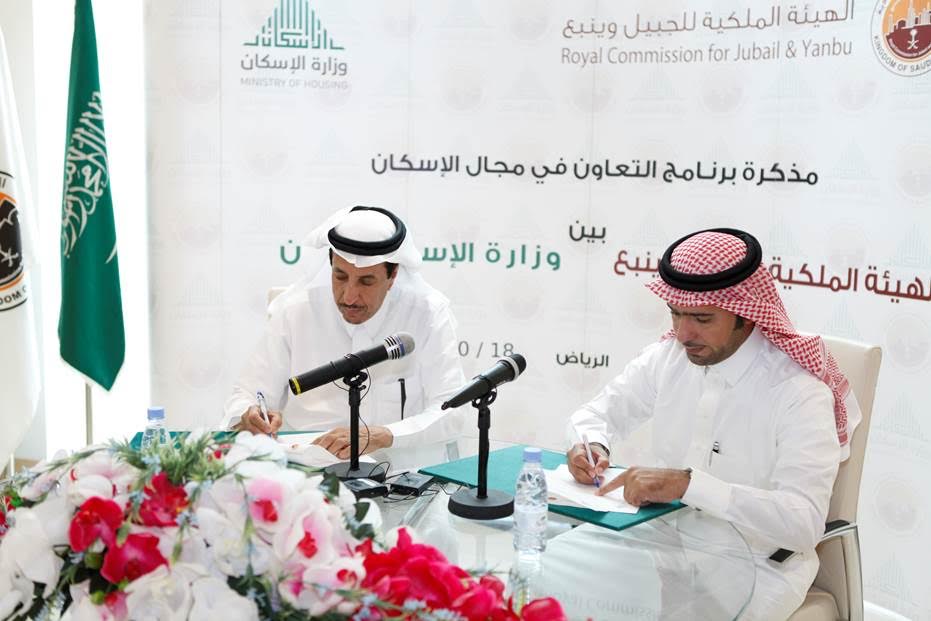 تحقيقاً لتوجيهات القيادة الرشيدة للرقي بمستوى الخدمات المقدمة للمواطنين في مجال الإسكان، وتعزيزاً للتعاون المشترك بين كافة القطاعات الحكومية بما يتماشى مع أهداف برنامج التحول الوطني 2020، ورؤية المملكة 2030، أبرمت الهيئة الملكية للجبيل وينبع ووزارة الإسكان، مذكرة تعاون مشترك، للاستفادة من الاستراتيجيات والخطط المتوفرة لدى الطرفين، في مجال الإسكان.