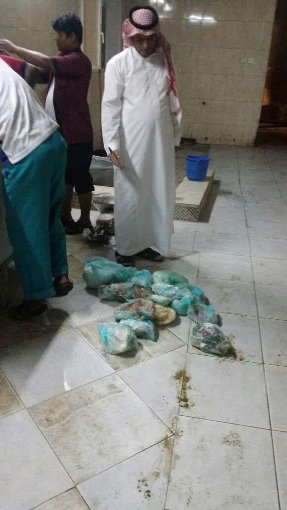 تمكّنت الفرق الرقابية ببلدية القوز بمحافظة القنفذة من ضبط كميات كبيرة من المواد الغذائية غير الصالحة للاستهلاك ومنتهية الصلاحية، أثناء قيام مجموعة من العمال المخالفين بتجهيزها؛ لتكون وجبات غذائية في أحد أشهر مطاعم القوز.