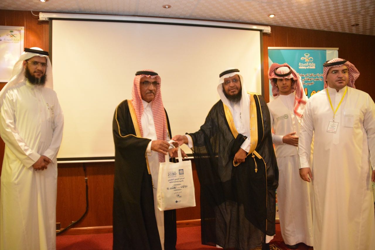 ثم تقدم ساعدة المحافظ والدكتور الجاسر ومساعد الصحة العامه الدكتور محمد الغامدي ومشرف قطاع الخميس خالد القحطاني بتكريم ابائنا المسنين والمشاركين في هذا الكرنفال.