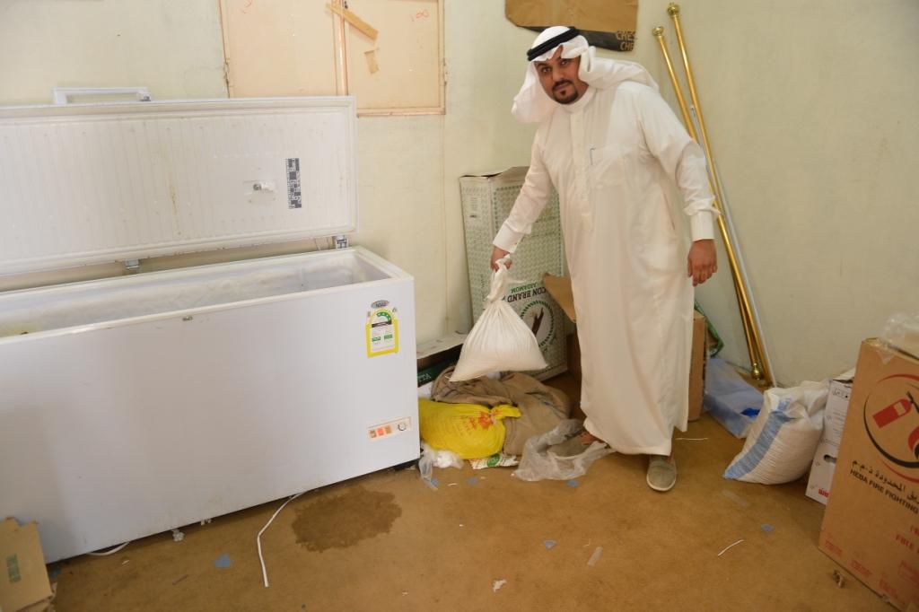 وبيّن المهندس القحطاني، أن اللجنة قامت برصد وتدوين جميع المخالفات التي ضبطت بالموقع، وأبرزها عدم وجود التصريح اللازم لمزاولة النشاط بالموقع، كما تمّ كشف ومصادرة كميات كبيرة من الأكل تم تحضيره في اليوم السابق بالإضافة لسوء التخزين للمواد الغذائية وعدم وجود الشهادات الصحية اللازمة التي تسمح للعامل مزاولة المهنة واستخدامهم لمواد غير صالحة للاستهلاك الآدمي.