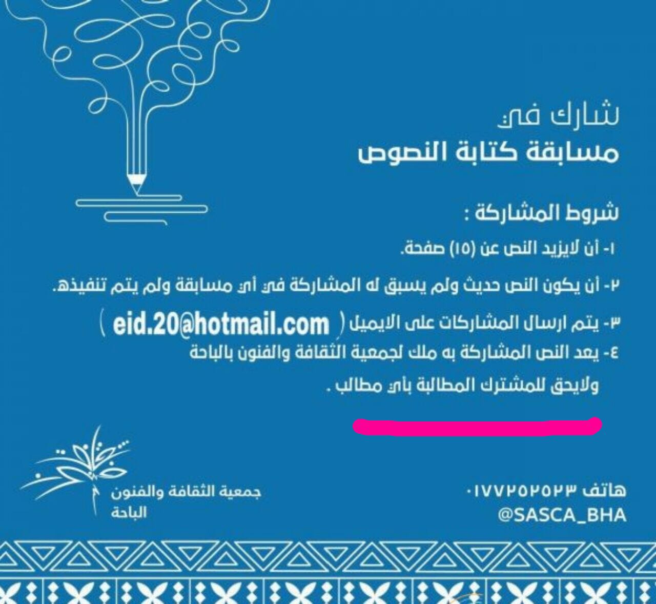 وأردفت”عجبي يافنون الباحة وأدتوا كتابنا ومبدعينا قبل أن تخط أقلامهم”.