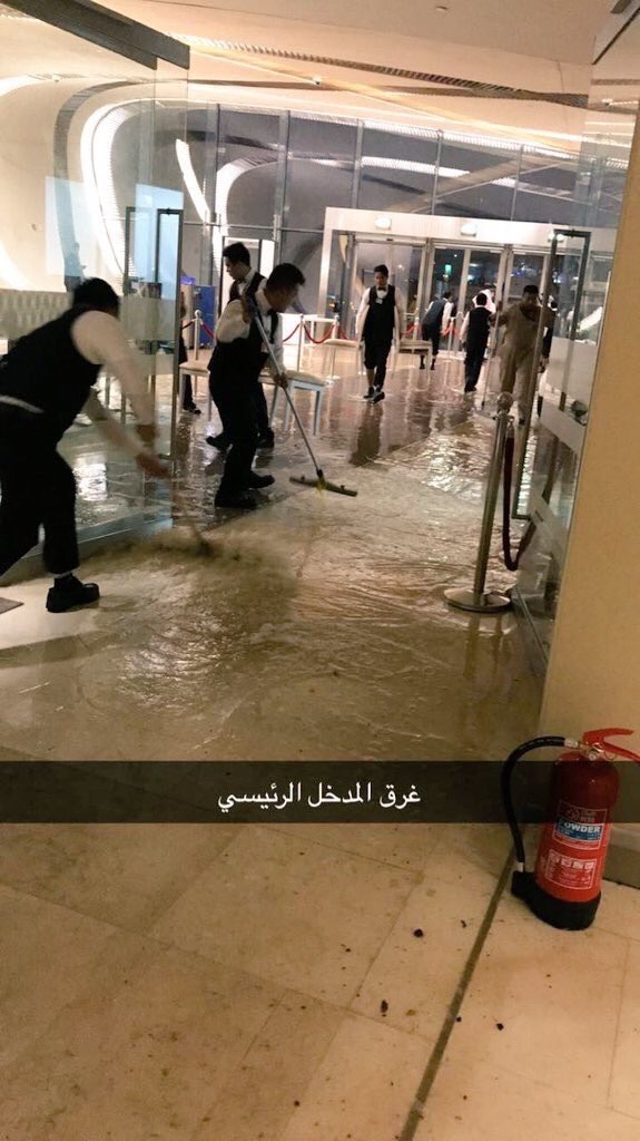 وتداول مستخدمو مواقع التواصل الاجتماعيّ صورًا ومقاطع فيديو تظهر اقتحام كميّات من المياه إلى مدخل المبنى وفشل جميع محاولات إنقاذ الموقف المتمثّلة في محاولة تصريف السيول قبل بدء الحفل .