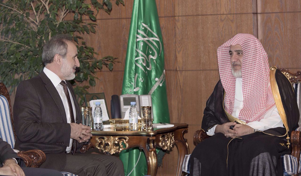 استقبل وزير الشؤون الإسلامية والدعوة والإرشاد، الشيخ صالح بن عبدالعزيز بن محمد آل الشيخ، في مكتبه بالوزارة في الرياض، اليوم الإثنين، رئيس المجلس الأعلى للشؤون الدينية في الجمهورية التركية، الدكتور أكرم كلش، والوفد المرافق له، الذي يزور المملكة حالياً.