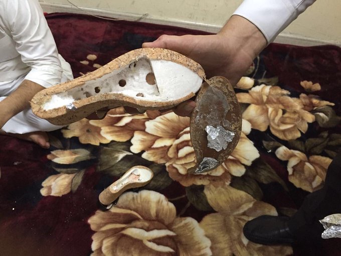 وأوضح عبد الله الفلاي مدير عام جمرك ميناء جدة الإسلامي المكلف: قَدِمت للجمرك إرسالية أحذية نسائية بعدد (346) كرتوناً، وعند قيام المراقب الجمركي بالإجراءات الجمركية المعتادة عثر على كمية من حبوب الكبتاجون مُخبأة بطريقة فنية ومصنعية بعد أن تم حشو تجاويف الأحذية من الأسفل بكمية الحبوب وورق الألومنيوم وإعادتها للشكل الطبيعي إلا أن نباهة ودقة ملاحظة المراقب الجمركي حالت دون دخولها، وأضاف الفلاي أنه تم اتخاذ الإجراءات اللازمة حيال ذلك.