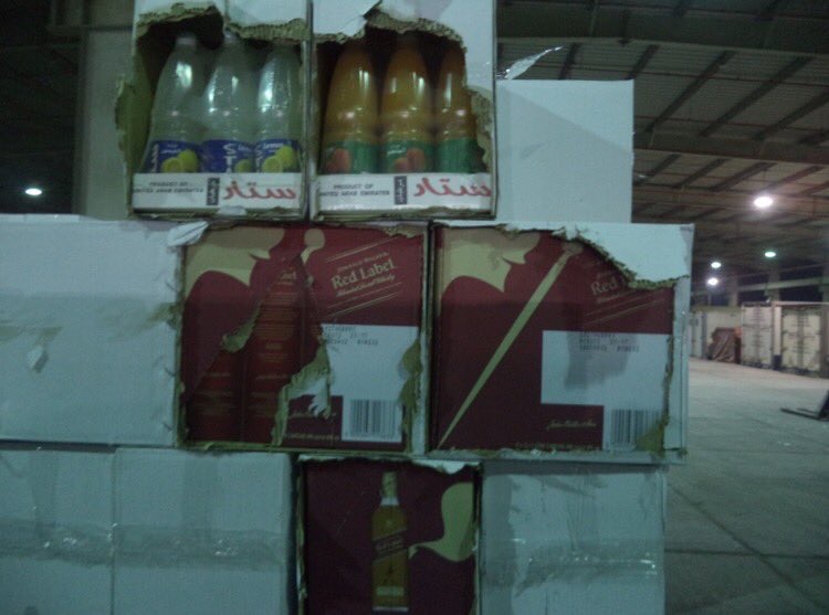 وفي التفاصيل، قال مدير عام جمرك البطحاء، عبدالرحمن المحنّا، إنه وردت للجمرك، إرسالية عبارة عن “عصير ليمون”، محمولة على إحدى الشاحنات القادمة، وفي أثناء إنهاء الإجراءات الجمركية، عُثِر على كمية من الخمور، بلغ عددها (15,600) خمسة عشر ألف وستمائة زجاجة خمر، كانت مُخبأة ضمن الإرسالية، بعد وضع كراتين خاصة بعصير الليمون، بمؤخرة الشاحنة وبالطبقة العلوية، لغرض التمويه.