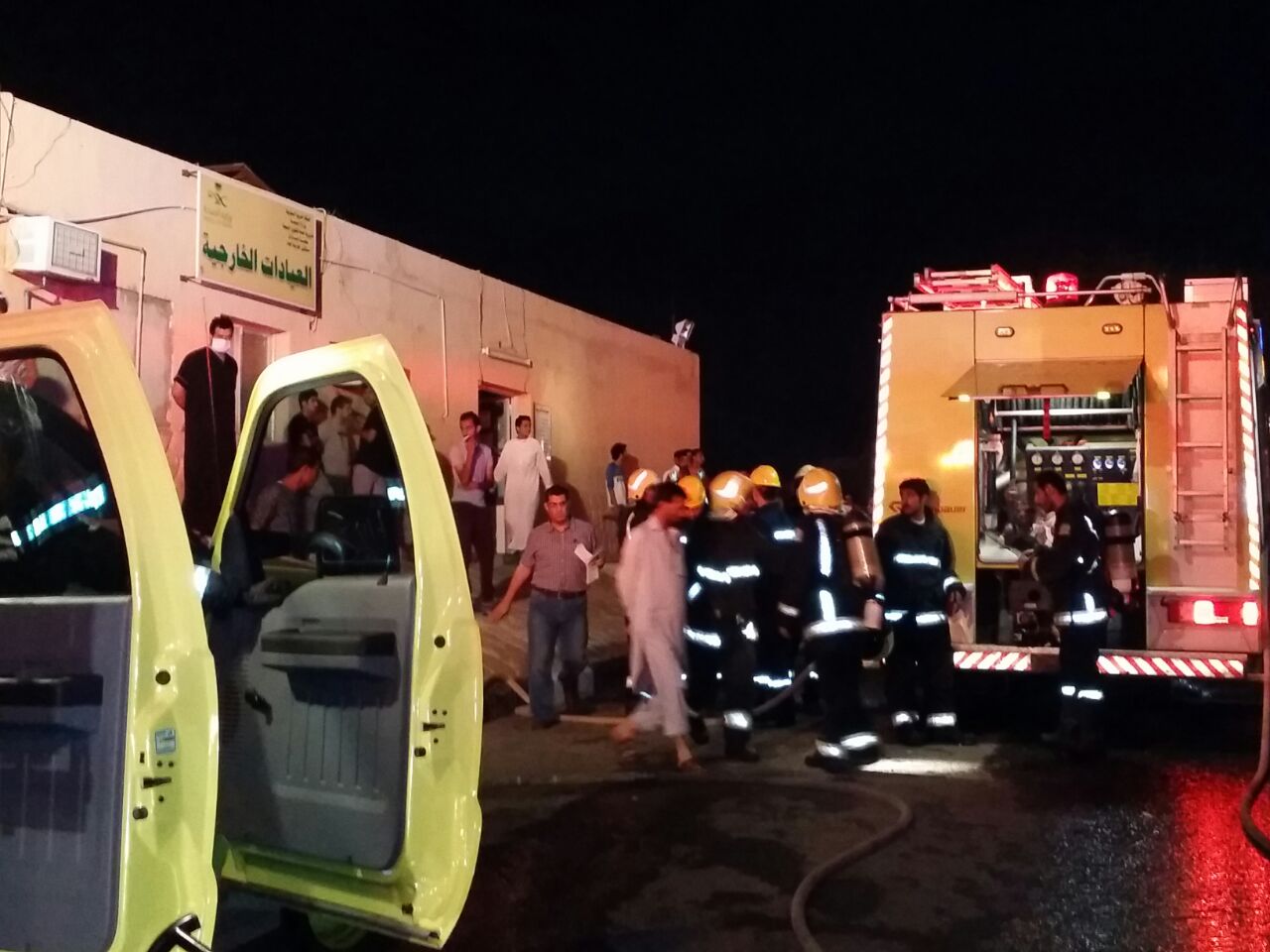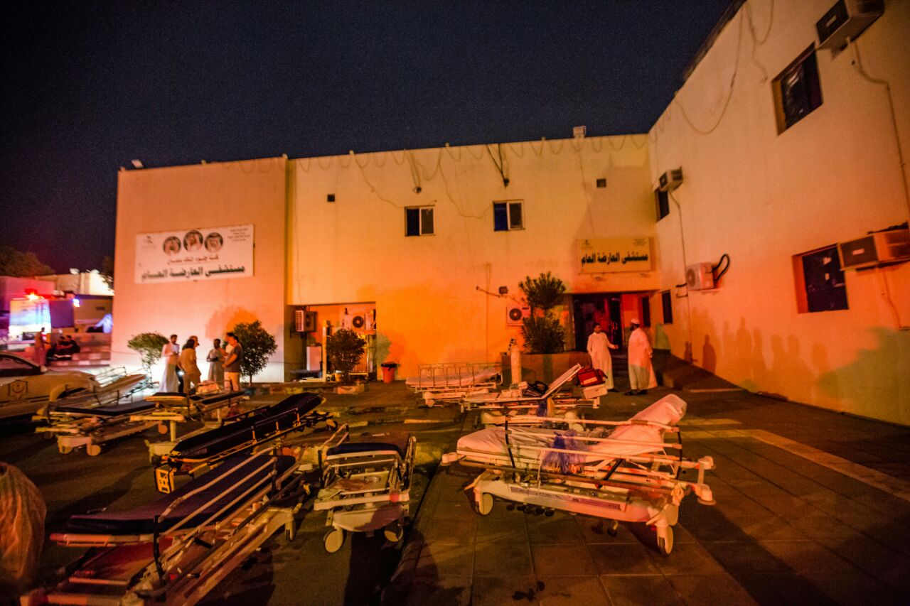 وأضاف أنّه تمّ إخلاء المرضى ونقلهم لمستشفيات المنطقة عن طريق الهلال الأحمر والشؤون الصحية بالتعاون مع الدفاع المدني، وعددهم ٤٢ حالة، ولم ينتج عن الحادث أي إصابات أو وفيات.