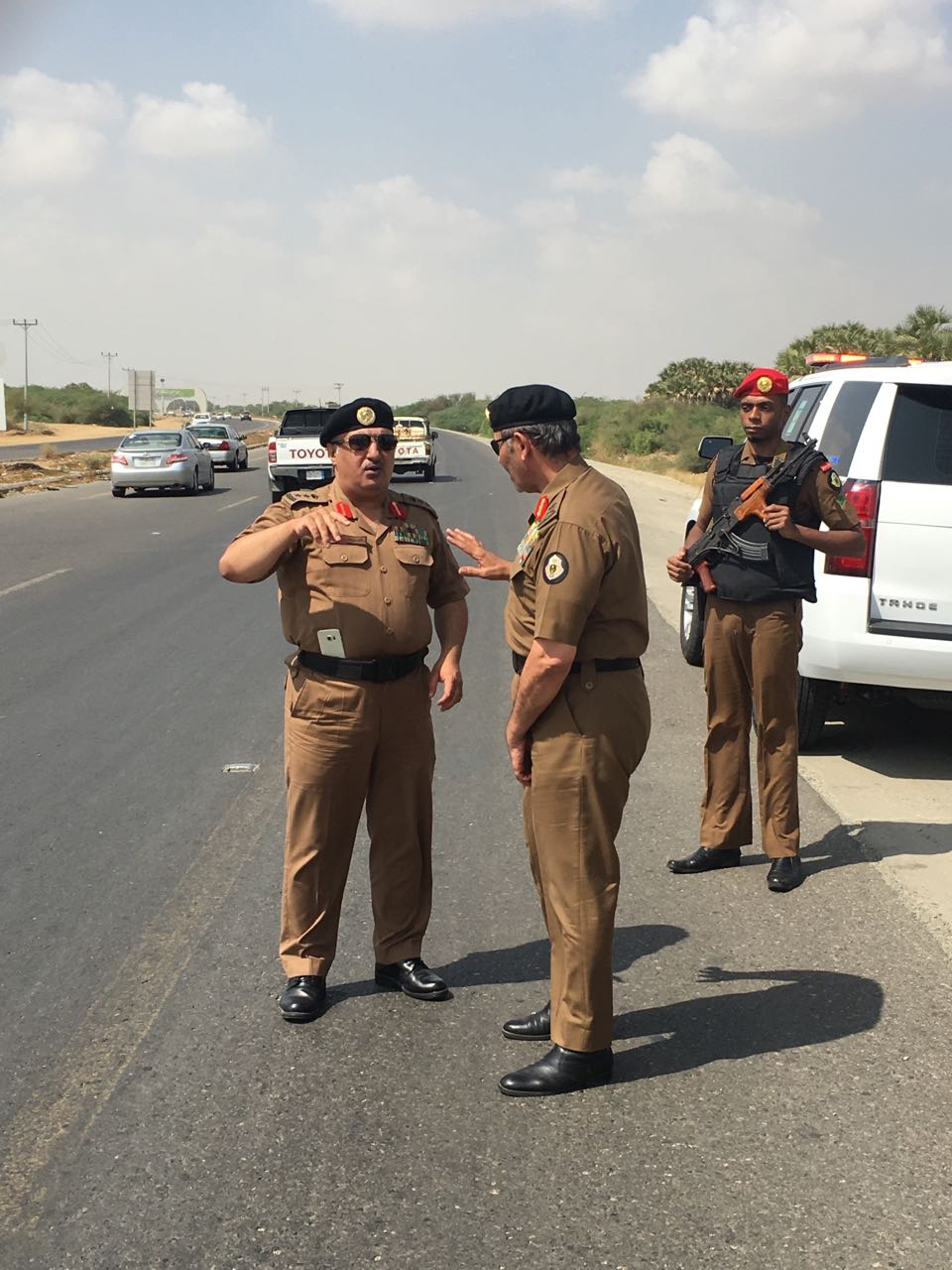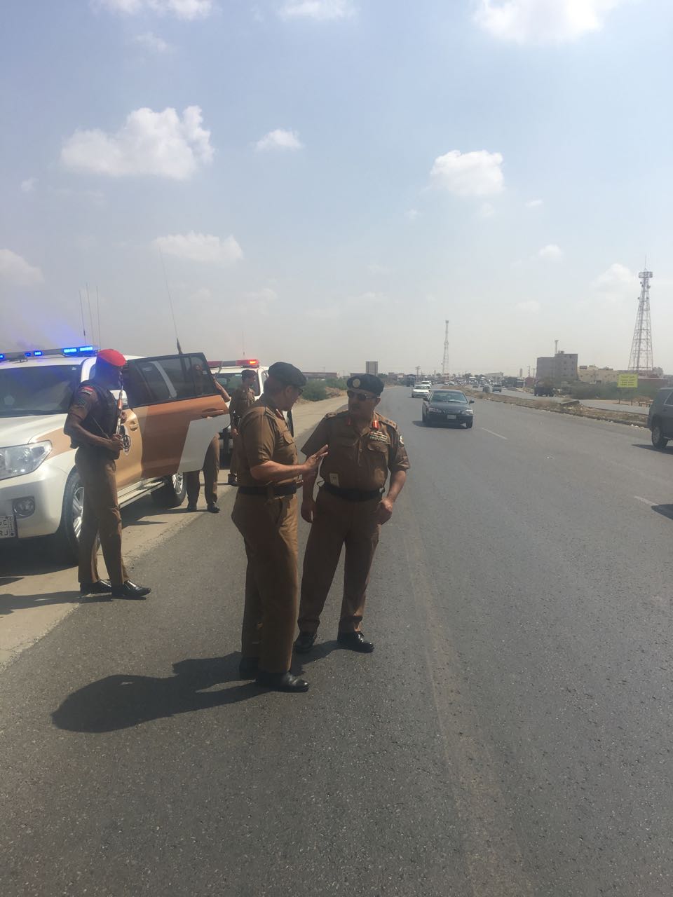 قام مدير شرطة منطقة جازان رئيس اللجنة اﻷمنية الدائمة اللواء ناصر بن صالح الدويسي يرافقه مدير إدارة المرور بجولة ميدانية على طريق “صبيا – بيش” تم الوقوف خلالها على تقاطع الحقو ووضع الحلول العاجلة والآنية له.
