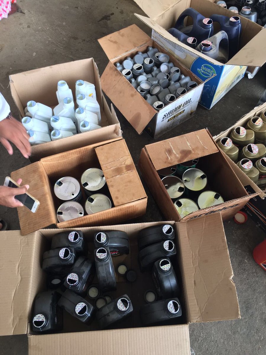 داهمت الفرق الرقابية بوزارة التجارة والاستثمار مستودعاً لبنشر في البدائع يبيع علب زيوت مستخدمة مغشوشة على أنها جديدة.