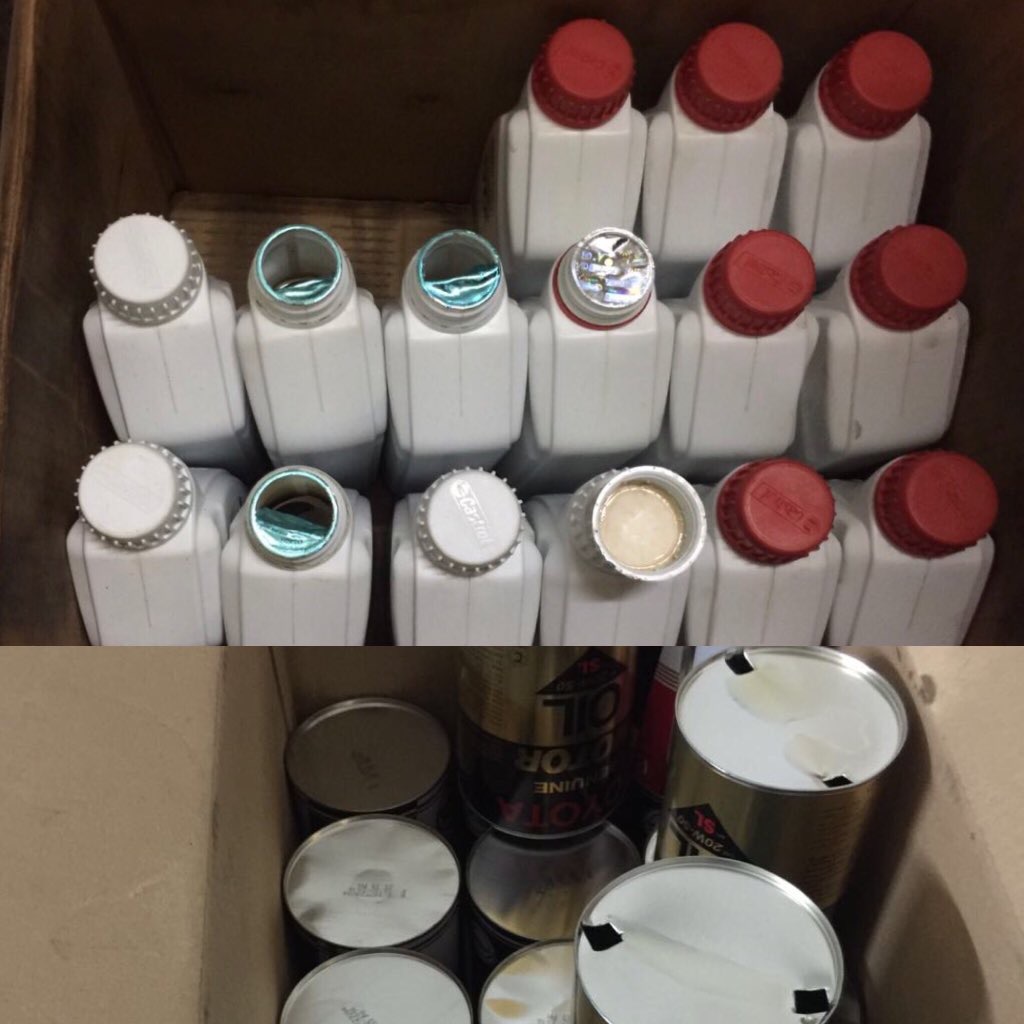 وقالت التجارة عبر حسابها على موقع التواصل الاجتماعي ” تويتر ” : “التجارة”بالتعاون مع الدوريات الأمنية تضبط برفحاء مركز لخدمة السيارات يغش بإعادة تعبئة زيوت رخيصة بعبوات أصلية وتصادر 700علبة و6جوالين مخلوطة.