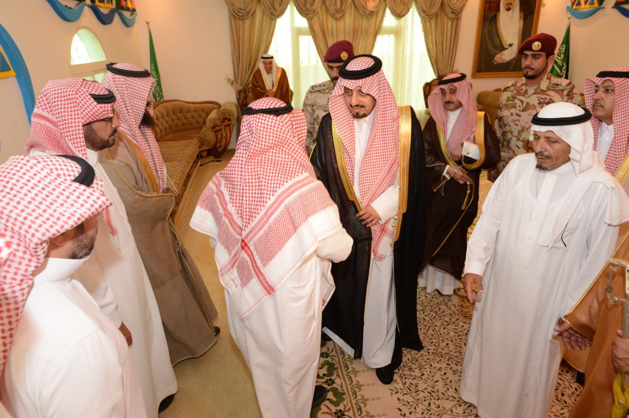وكان في استقباله لدى وصوله مقر العزاء بقرية السودة شيخ قبائل علكم الشيخ عبدالله بن عايض بن حامد ورئيس مركز السودة أحمد بن محمد آل دبيس وأبناء الفقيد وعدد من أفراد الأسرة.