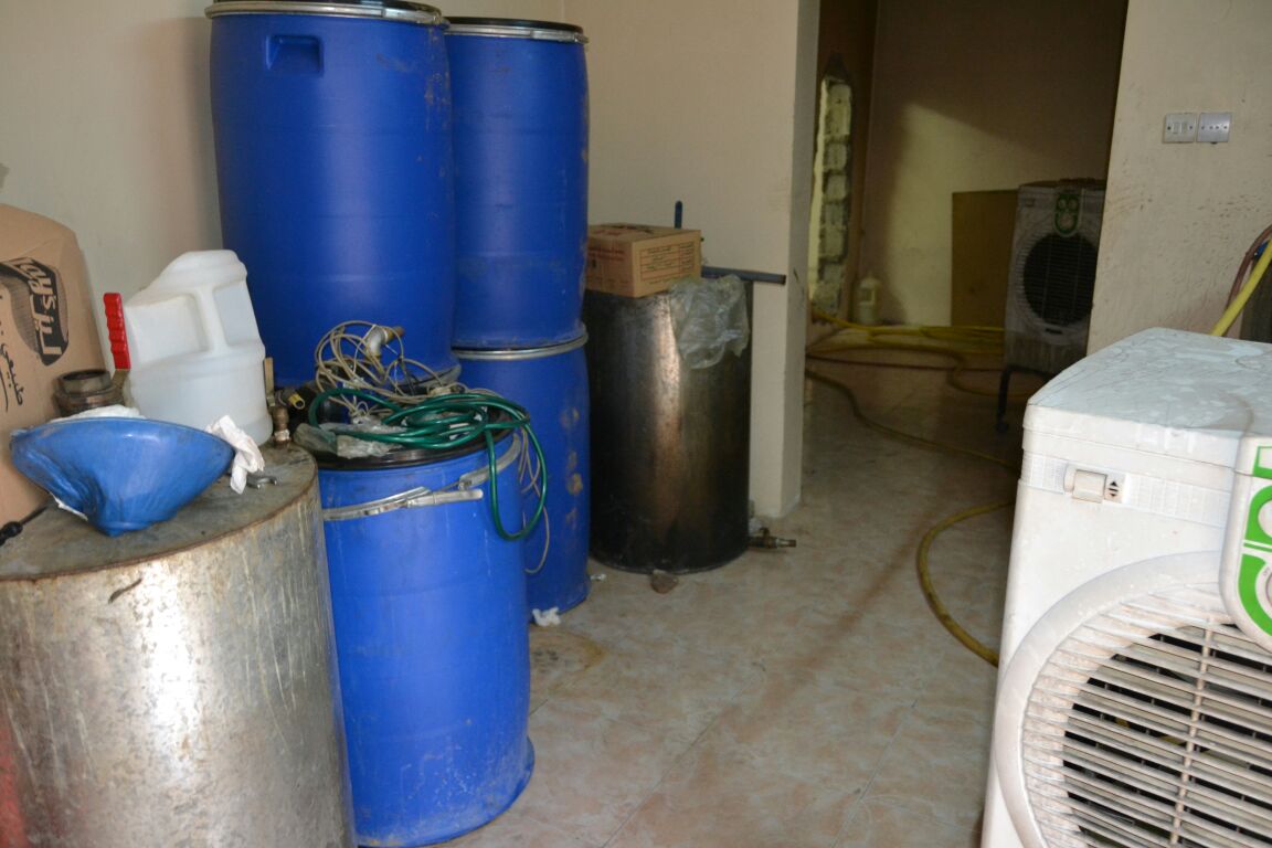 وأضاف، أنه خلال المداهمة تم ضبط كميات كبيرة من مادة العرق المسكر الجاهز للبيع، مفصله كما يلي: