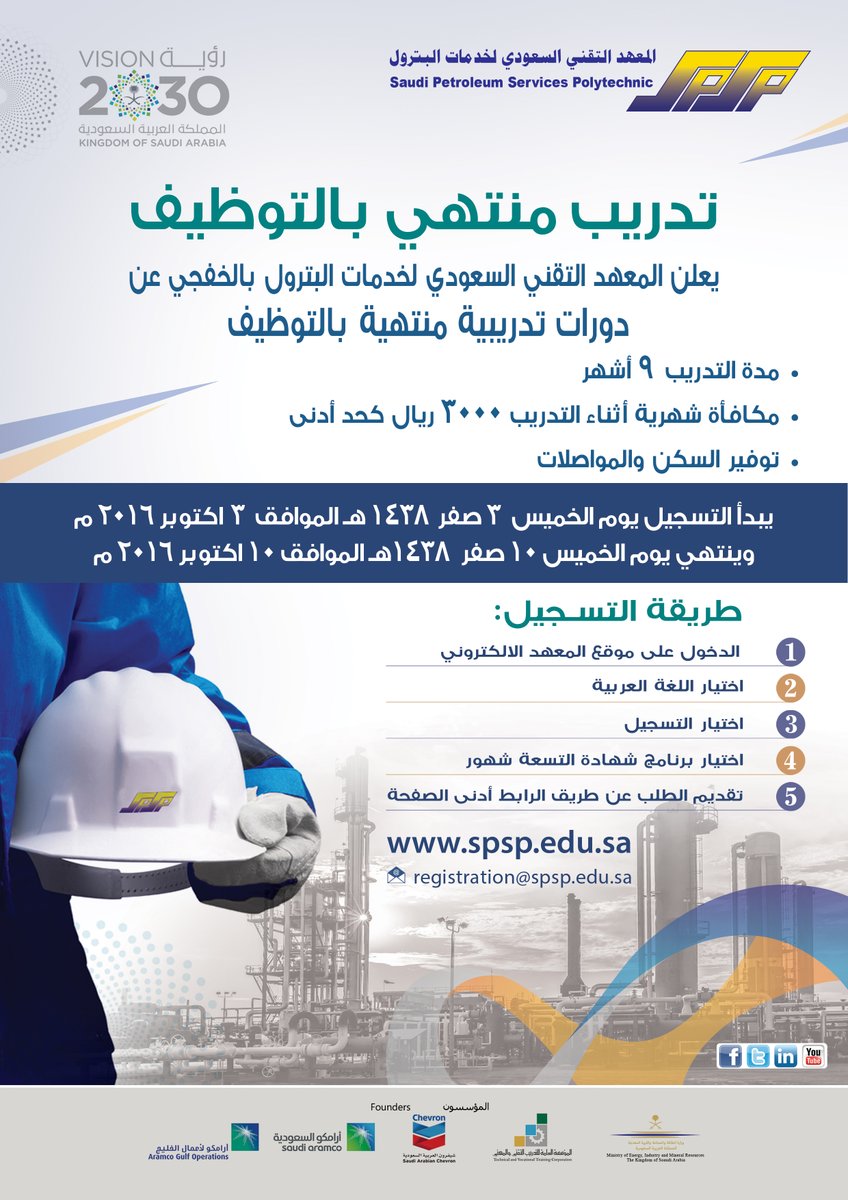 بدء التسجيل بالمعهد التقنيّ لخدمات البترول لبرنامج التدريب المنتهي بالتوظيف