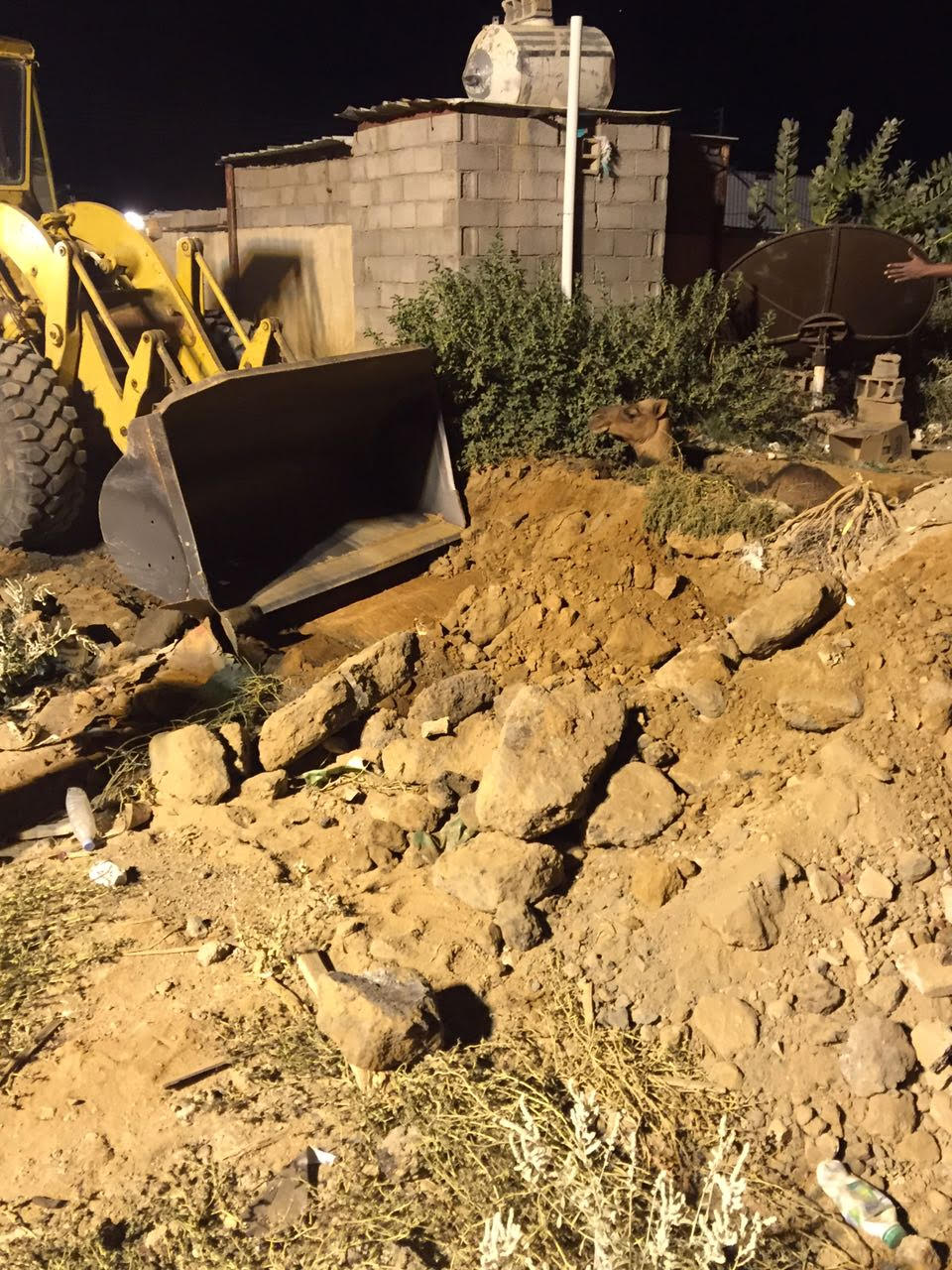 وأضاف أنّه تمّ الحفر بالشيول بجانب جدار حفرة الصرف الصحي وتصريف المياه من داخل الغرفة وإخراج الناقة.
