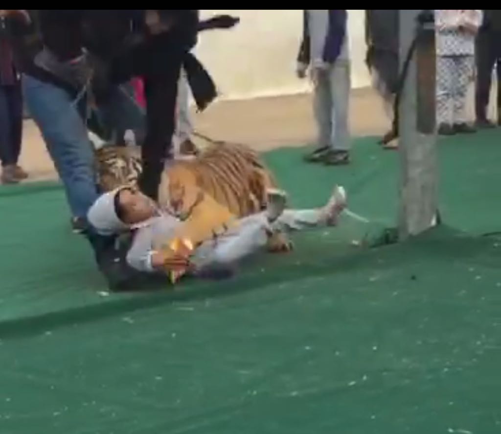 انتشر مقطع لنمر برفقة مروضة بأحد المهرجانات بالجوف وهو يهجم على طفلة، مما أثار الرأي العام بالجوف حول كيف يكون العرض بهذه الطريقة ولا يوجد حاجز بينه وبين الجمهور.