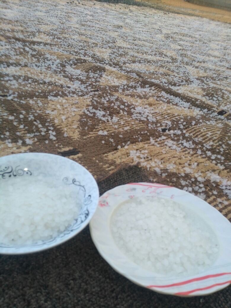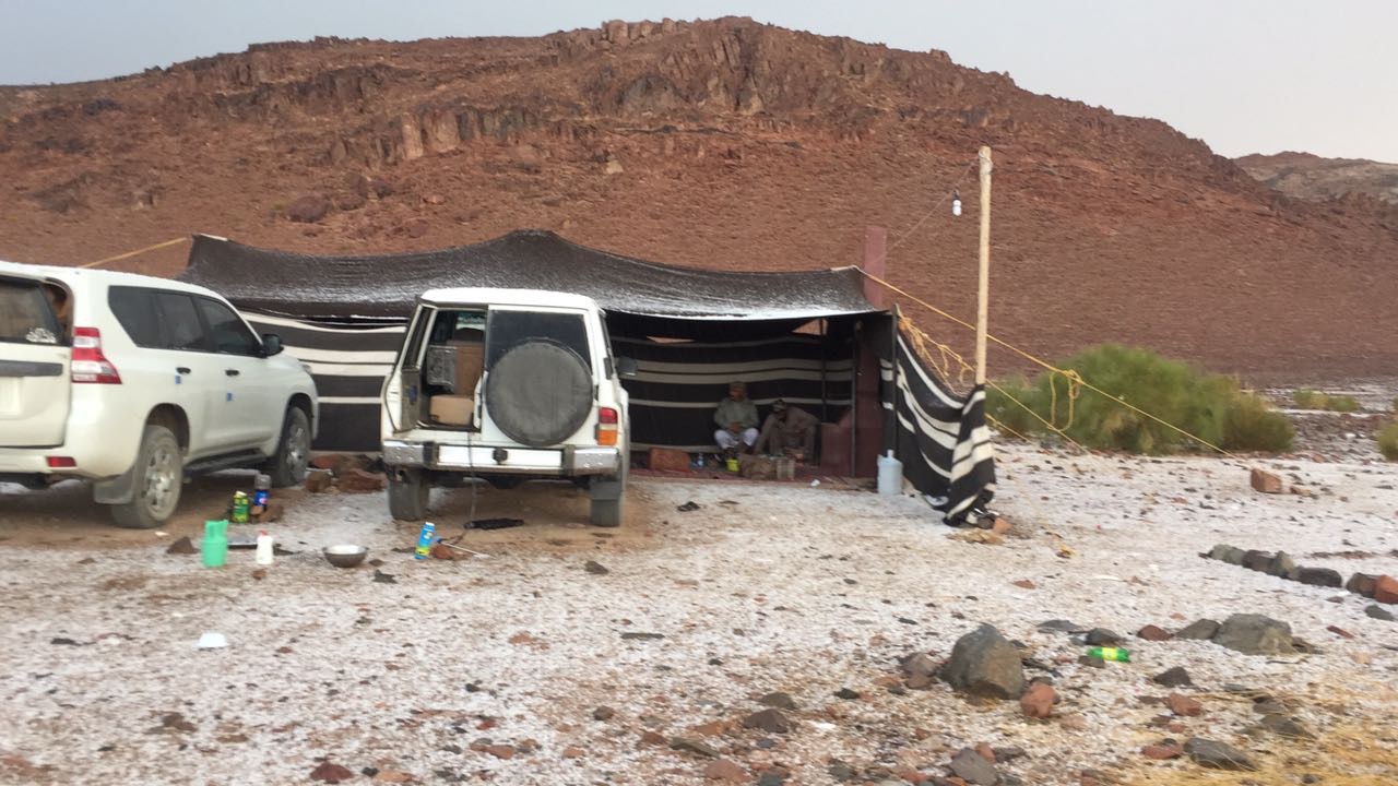 وثق عدد من المواطنين تساقط الأمطار محملة بكميات كبيرة من البرد، اليوم الأربعاء على منطقة تبوك ومنطقة الجوف “محافظة طبرجل”، والمنطقة الواقعة بين محافظة طريق والقريات “الحماد”.