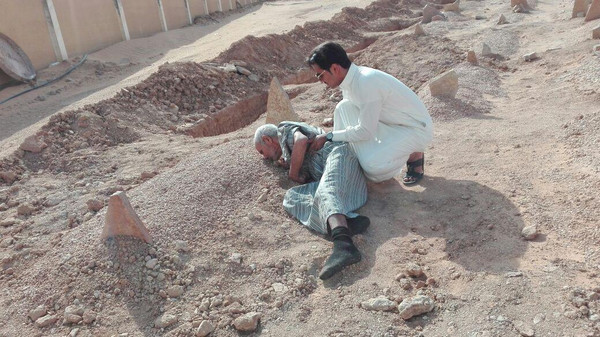 المواطن السعودي يدعى دخيل السرحاني من “قارا”، بمنطقة الجوف زار قبر زوجته، التي توفيت قبل نحو 5 أشهر.