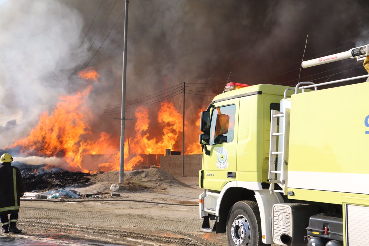 مدني مكة يباشر حريقا التهم مستودعًا بحي جعرانة