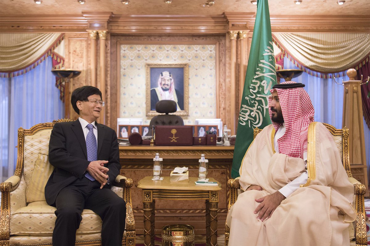 التقى صاحب السمو الملكي الأمير محمد بن سلمان بن عبدالعزيز، ولي ولي العهد، النائب الثاني لرئيس مجلس الوزراء، وزير الدفاع، في مكتبه بالمعذر، اليوم، معالي عضو المكتب السياسي للجنة المركزية، أمين اللجنة القانونية السياسية المركزية، المبعوث الخاص لفخامة الرئيس الصيني، منغ جيان تشو.
