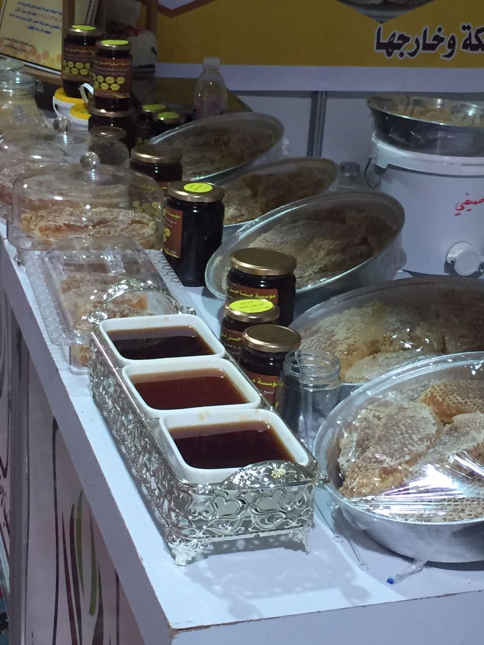 وشهد المهرجان عرض جميع أنواع العسل وانتشرت موائد العسل في جنبات وأركان المعرض، وسط إقبال من المتسوقين والمتنزهين.