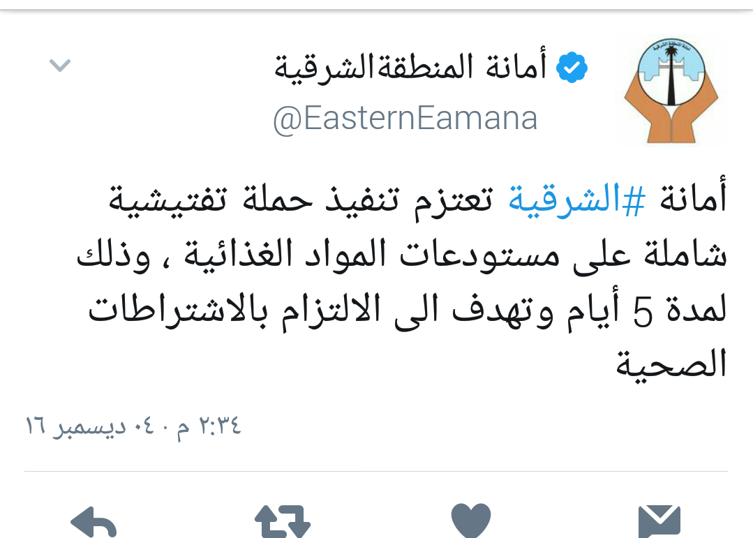انتقد عدد كبير من المغردين طريقة إعلان أمانة الشرقية بإخبار عدد من المستودعات الغذائية بالتفتيش عليها خلال الأيام الخمسة المقبلة، الأمر الذي اعتبره البعض فرصة كي يأخذ التجار حذرهم قبل بدء عملية التفتيش.