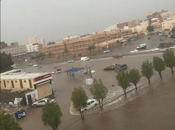 أمطار جدة تحتجز 48 عاملاً .. والمدني ينقذهم