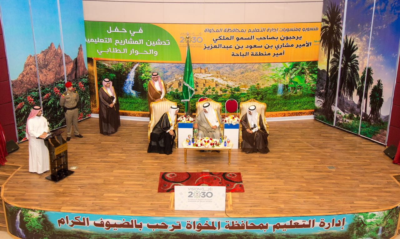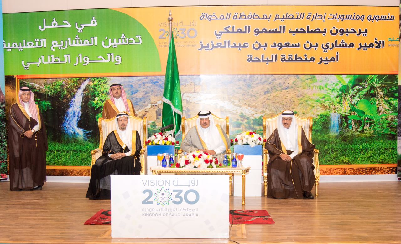 جاء ذلك خلال تدشينه اليوم عددًا من المشروعات التعليمية بمحافظات القطاع التهامي بالباحة، في كل من محافظة المخواة، وقلوة، والحجرة، وغامد الزناد، بمبالغ فاقت 208 ملايين ريال، وبعدد 25 مشروعًا ما بين مستلمة وجارِ تنفيذها، حيث التقى سموه بالطلاب والطالبات في حوار طلابي وذلك بمقر إدارة تعليم المخواه.