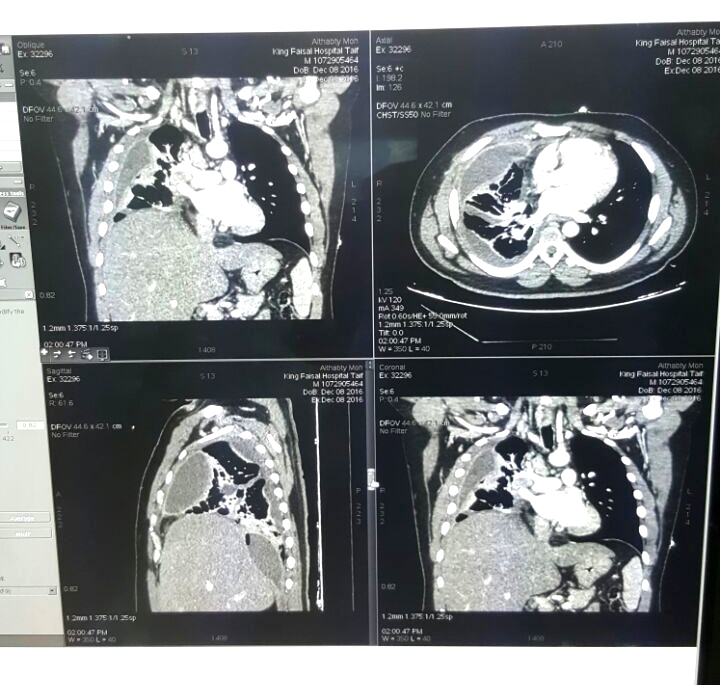 وقال استشاري جراحة المناظير والصدر بمستشفى الملك عبد العزيز التخصصي بالطائف، وعضو هيئة التدريس بكلية الطب بجامعة الطائف، الدكتور محمد عيد محفوظ، إن المريض أُدخِل من قبل الأخصائي المناوب بمجمع الملك فيصل بالطائف، وأودع العزل نتيجة الاشتباه بإصابته بفيروس كورونا، وأظهرت الفحوصات وجود تقيُّح شديد ومتعدّد بالصدر، مع التهاباتٍ والتصاقاتٍ شديدية بالرئة اليمنى، وضيقٍ بالتنفس، مع ارتفاعٍ بدرجة الحرارة، وأعراض تسمُّم بالدم.