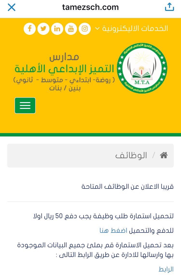 تفاعل متحدث وزارة التعليم مبارك العصيمي مع تغريدة أحد المغردين بعدما وضعت إحدى المدارس الأهلية شروطاً للتوظيف لتحميل وثيقة التقديم ودفع مبلغ قدره ٥٠ ريالاً.