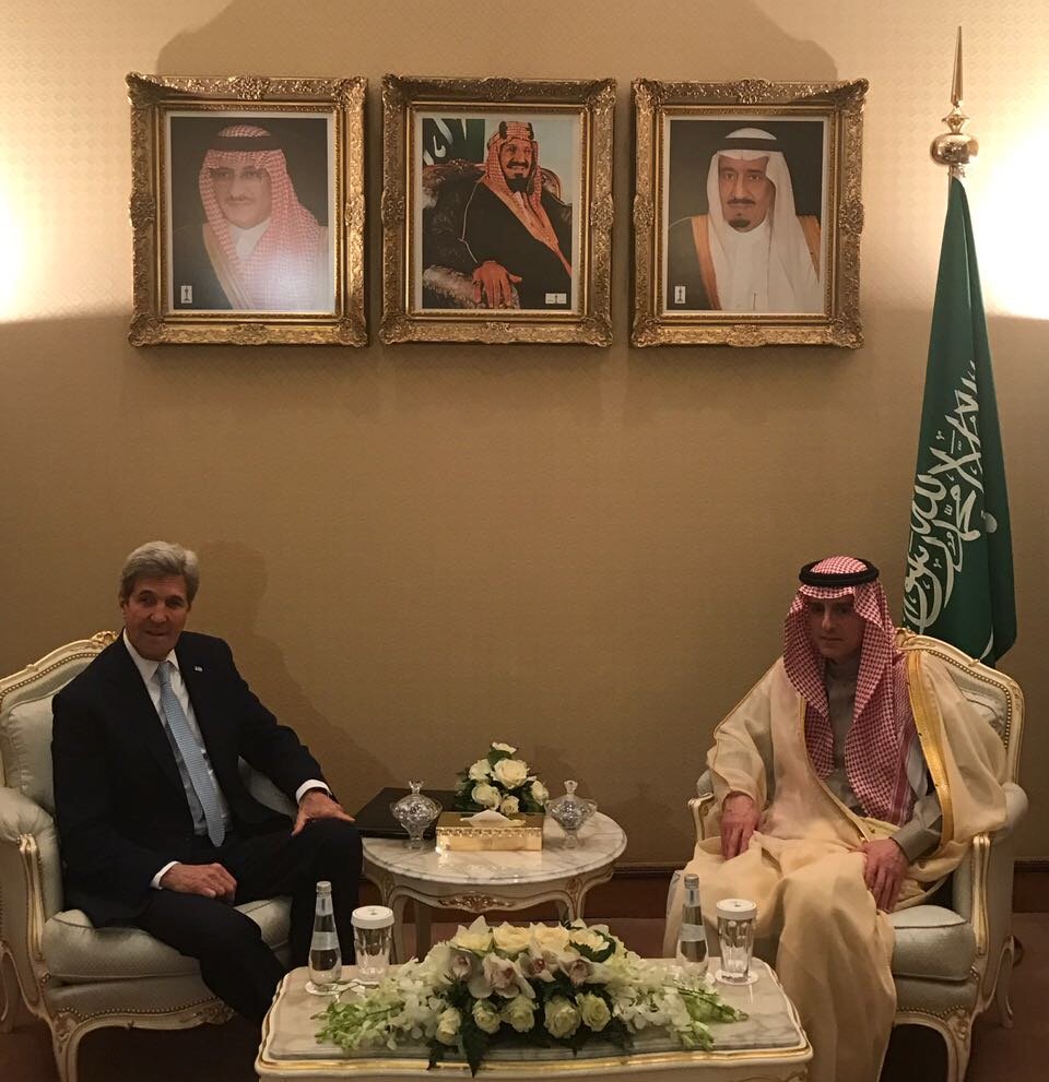 التقى وزير الخارجية عادل الجبير نظيره الأمريكي، جون كيري، في قصر المؤتمرات بالرياض.