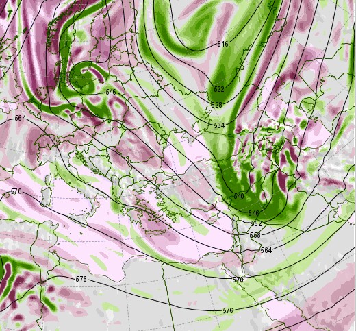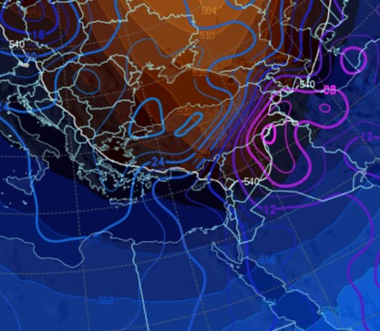 خط السماكة الثلجية ٥٤٠ والحدود المتوقعة لتساقط الثلوج