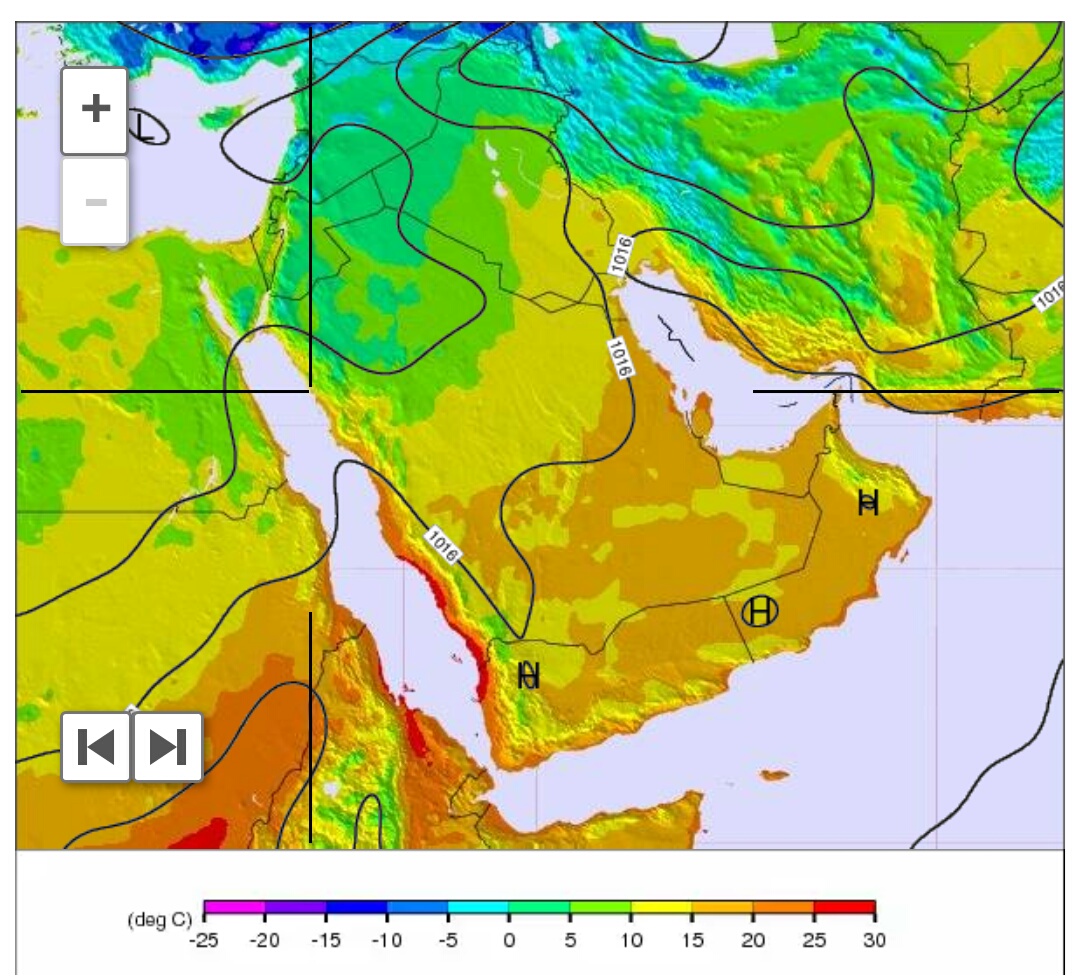 أخيراً … مؤشر درجات الحرارة بعد مرور المنخفض ؛ ويلاحظ الصقيع والتجمد على المناطق الشمالية