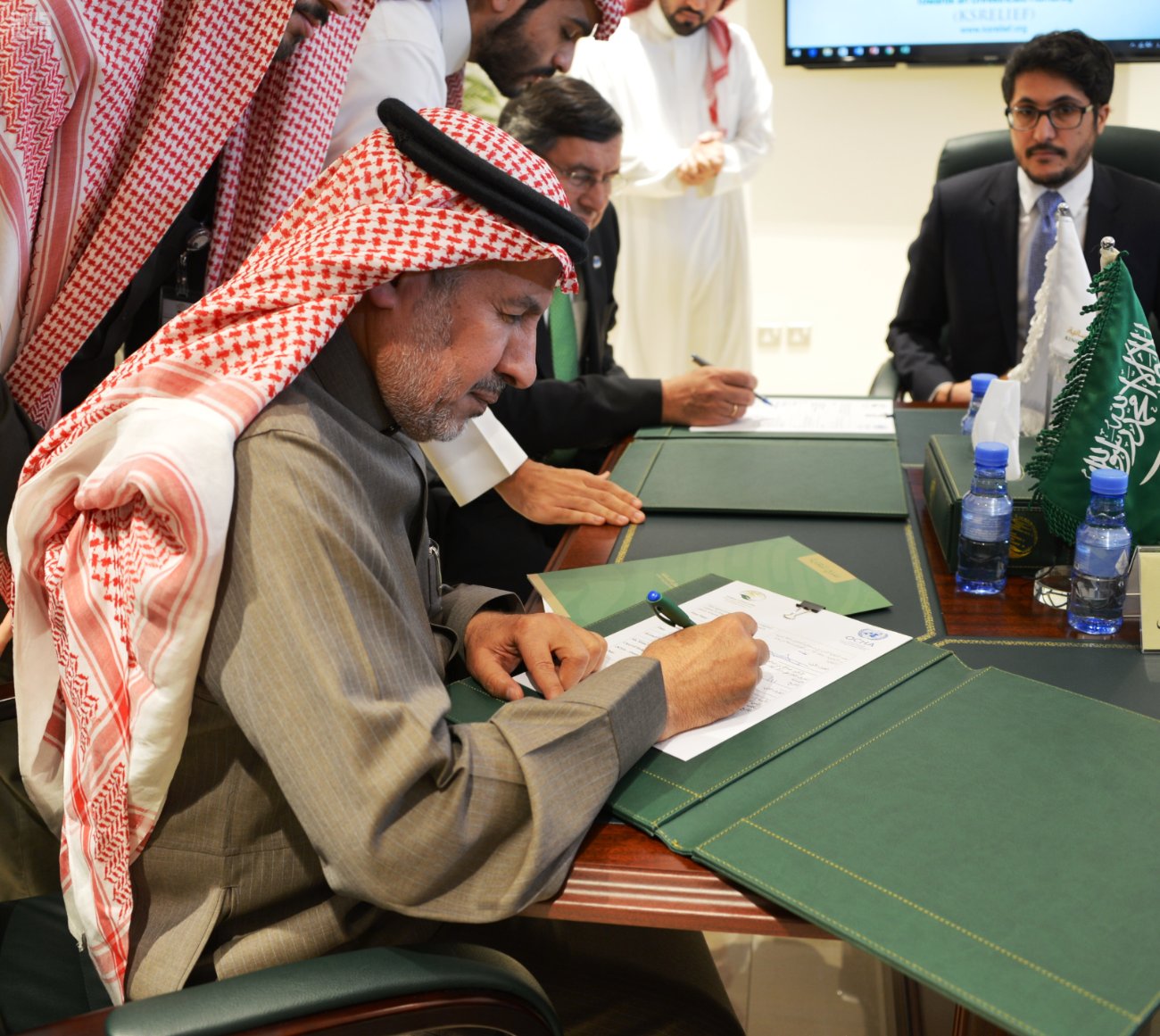 وتسلّم المساهمة بمقر المركز في الرياض، مساعد الأمين العام للأمم المتحدة لشؤون الشراكة في الشرق الأوسط ووسط آسيا، رشيد خليكوف.