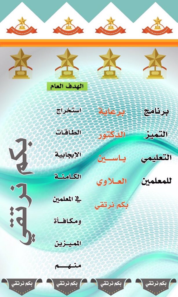 ويهدف البرنامج إلى استخراج الطاقات الإيجابية الكامنة في المعلمين ومكافأة المميز منهم وفق معايير معينة تساهم في رفع أداء المعلم بما ينعكس ايجاباً على مستوى الطالب.