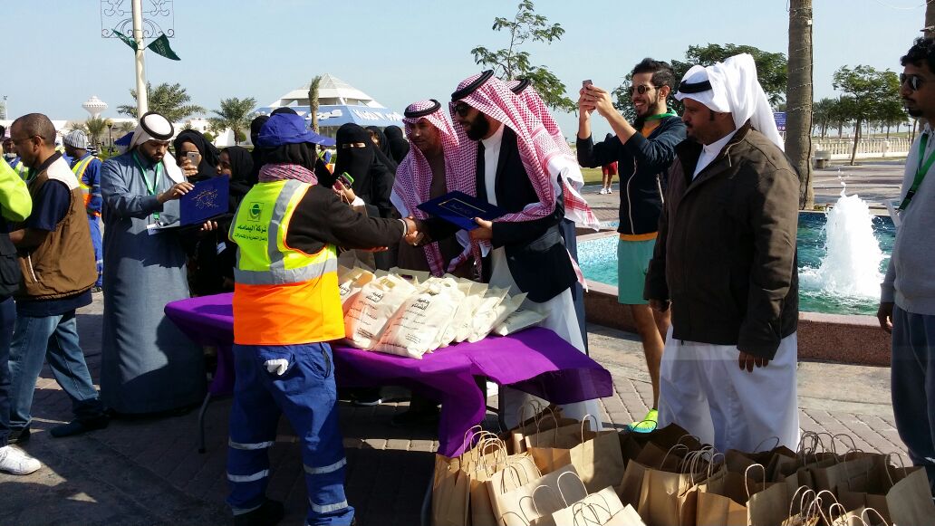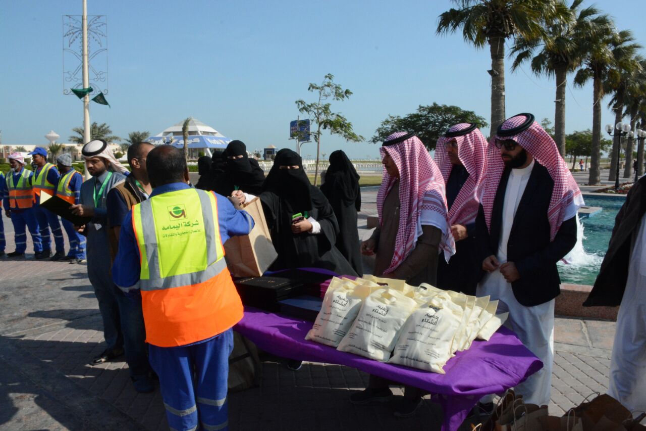 أطلقت مجموعة من السيدات بمدينة الخبر بالتعاون مع بلدية محافظة الخبر ممثلة بإدارة النظافة مبادرة لتكريم عمال النظافة المتميزين بالمدينة وذلك بإقامة مائدة إفطار لـ 65 عاملاً بواجهة الخبر البحرية وبحضور مساعد رئيس بلدية الخبر للخدمات الدكتور خليفة بن عبدالله السعد ومدير الخدمات موسى العنزي , ومدير إدارة النظافة المهندس محمد الجاسم , حيث تم تقديم وجبات الإفطار للعاملين وشهادات تقدير , ومؤنة الشتاء لكل عامل تقديراً لإسهاماتهم في الحفاظ على البيئة.